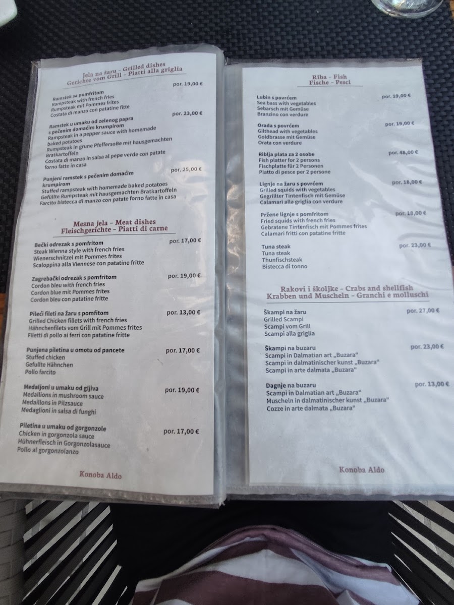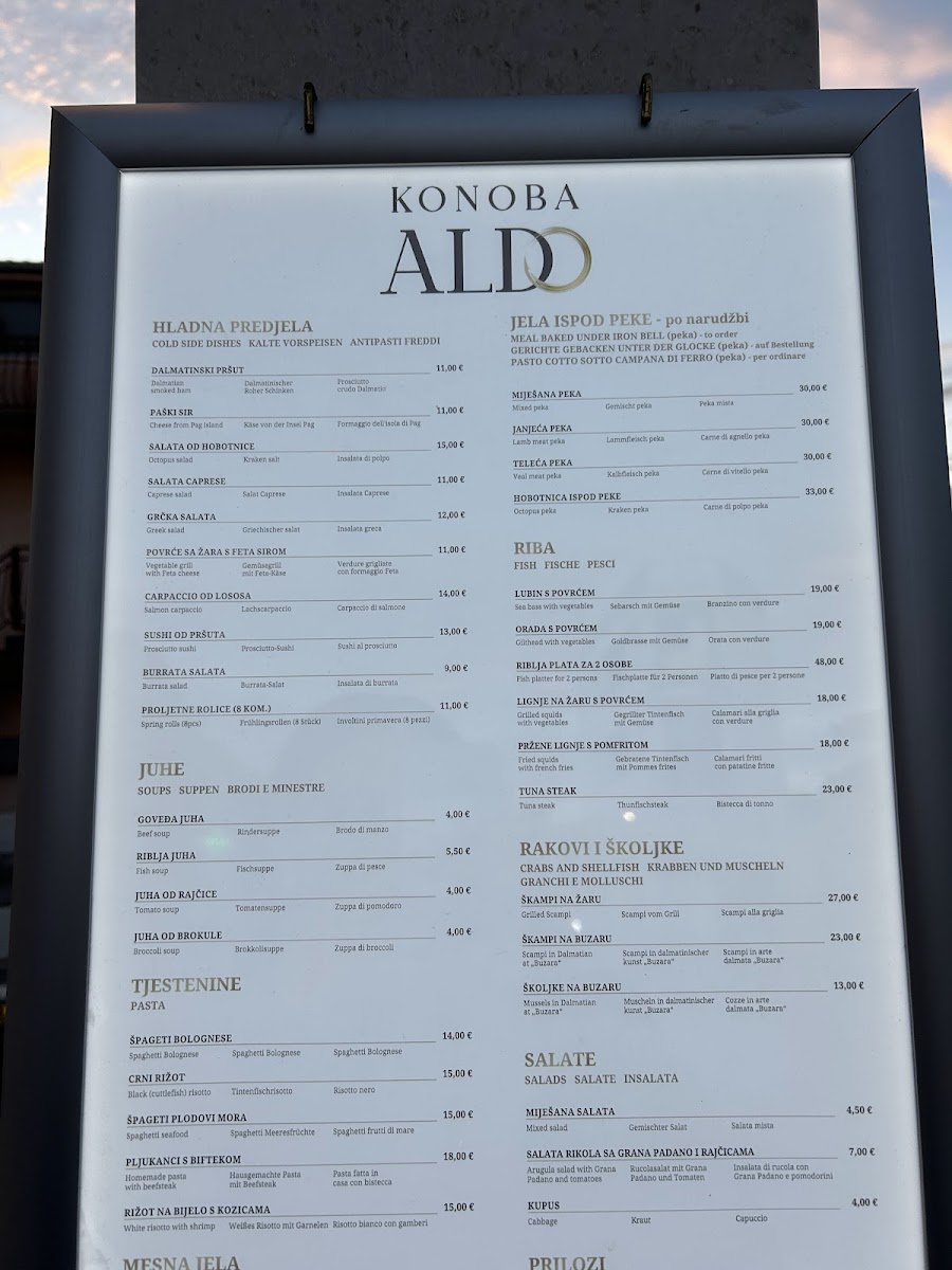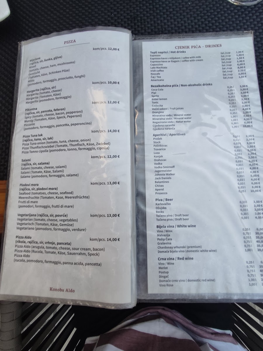 The dishes are known for their rich, balanced flavors, though some find the seasoning slightly salty, a minor note in an otherwise exquisite culinary journey. With options ranging from classic pizzas to refined seafood and local wines, the menu caters to both casual diners and gastronomes seeking sophistication. Open year-round, Konoba Pizzeria Aldo remains a must-visit destination for those craving a genuine taste of Dalmatia in a welcoming, relaxed setting.
