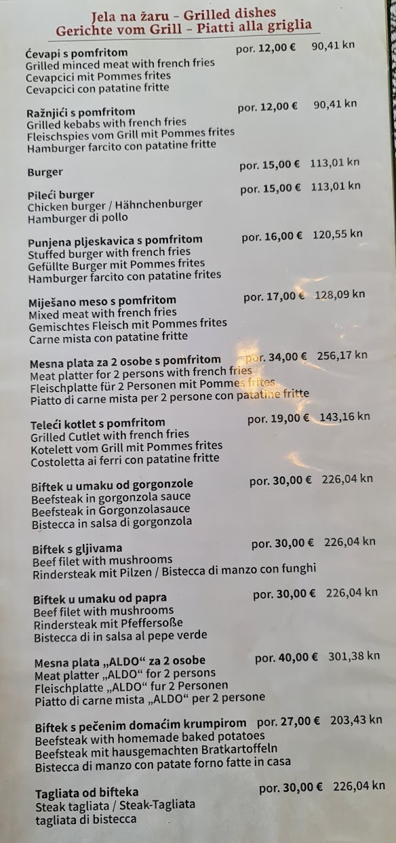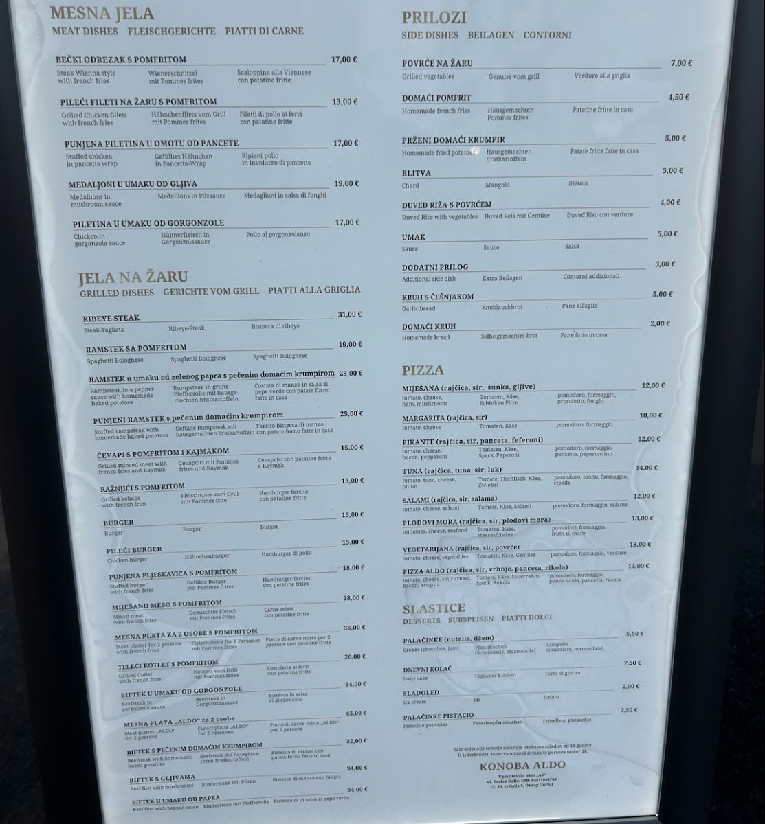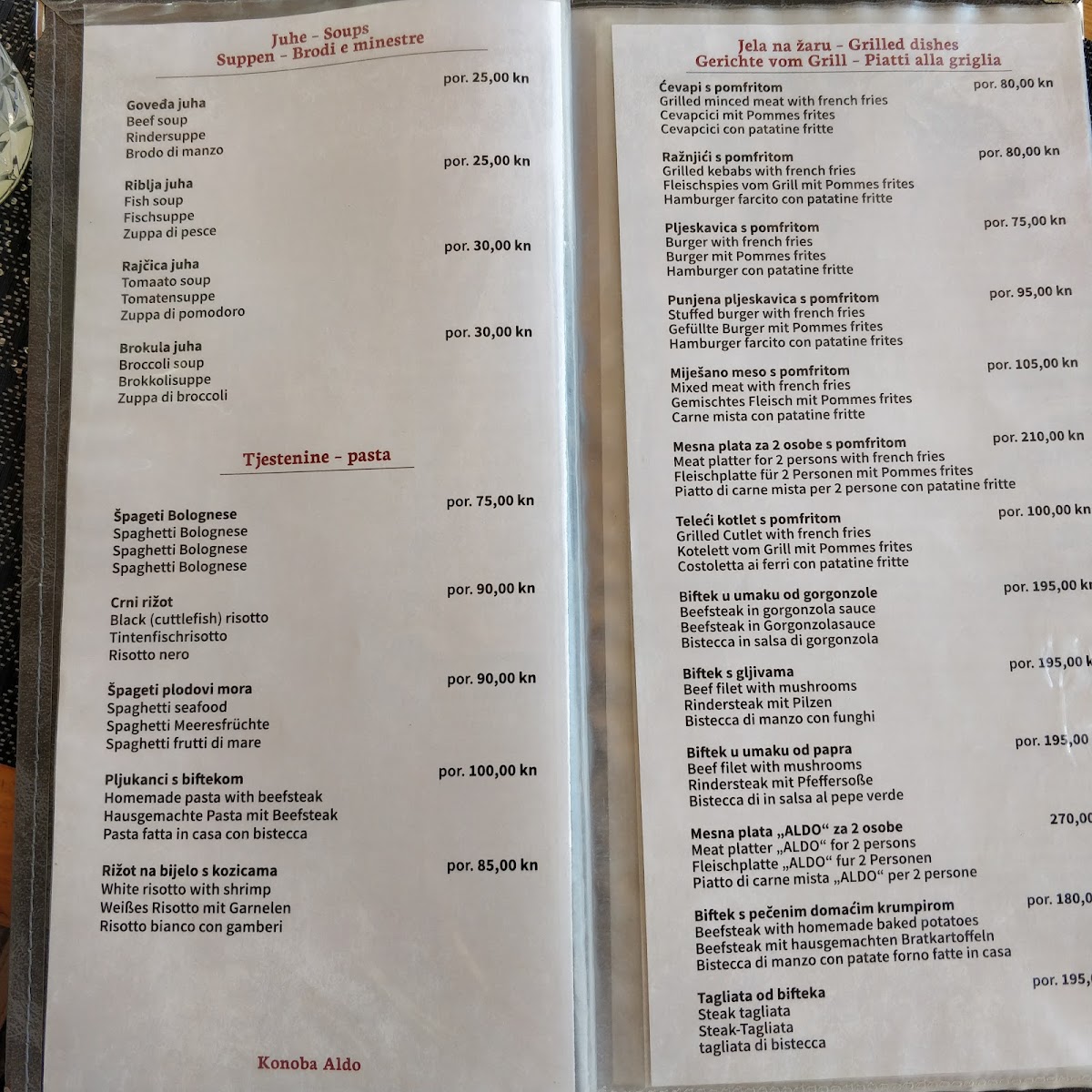 The dishes are known for their rich, balanced flavors, though some find the seasoning slightly salty, a minor note in an otherwise exquisite culinary journey. With options ranging from classic pizzas to refined seafood and local wines, the menu caters to both casual diners and gastronomes seeking sophistication. Open year-round, Konoba Pizzeria Aldo remains a must-visit destination for those craving a genuine taste of Dalmatia in a welcoming, relaxed setting.